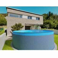 SUMMER FUN Stahlwandpool Rund 450x120cm, Stahl 0,4mm Anthrazit, Folie 0,4mm Blau, Einhängebiese