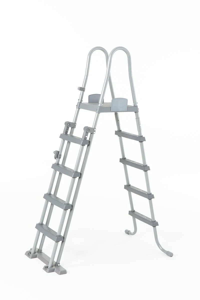 Sicherheits Hochbeckenleiter 132cm, 2 x 4 Stufen, außen hochklappbar, mit Plattform, grau