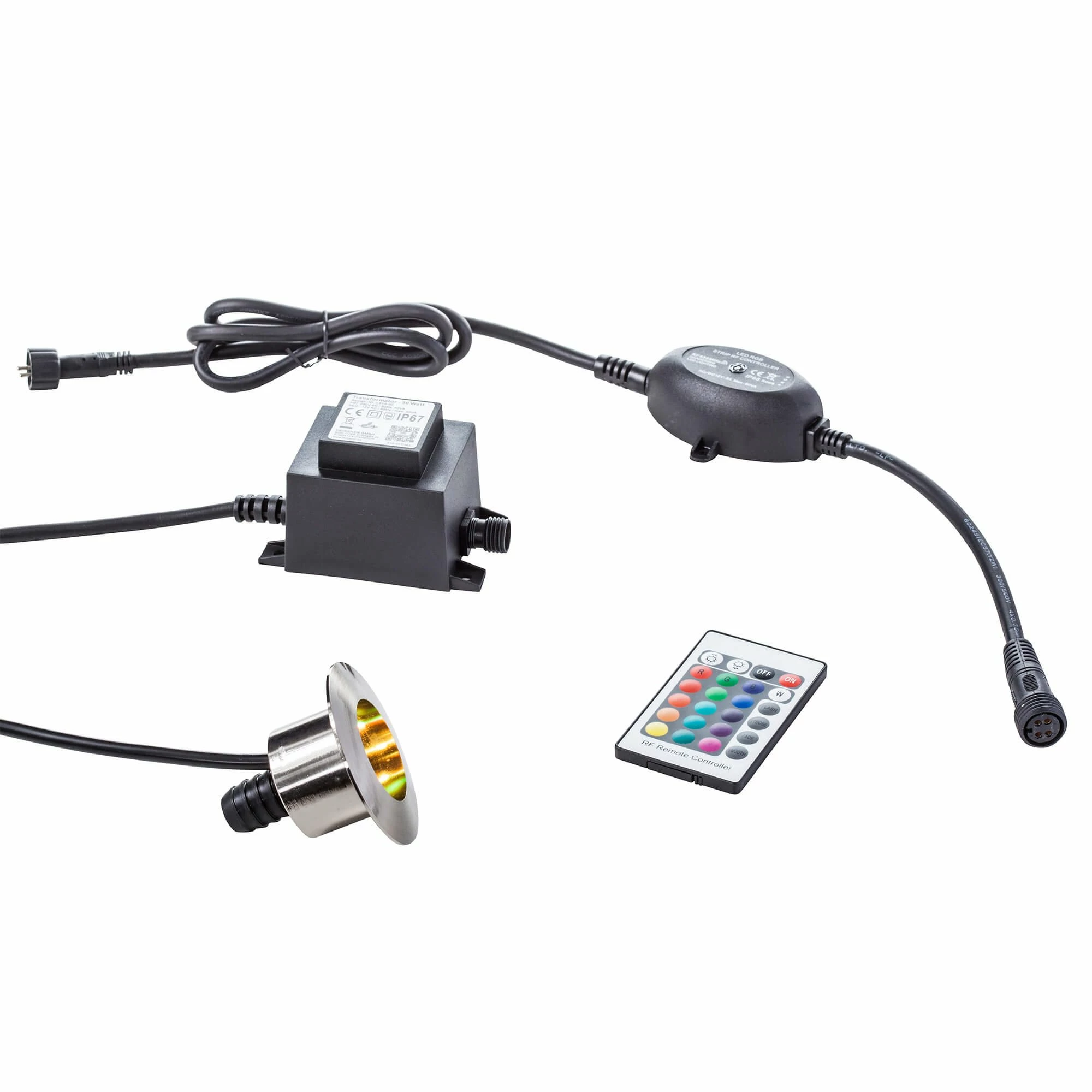 Setzen Sie Ihren Steinbrunnen, Quellstein oder Wasserspiel effektvoll in Szene mit dem RGB Schlauchanschluss inkl. Transformator und RGB-Controller.