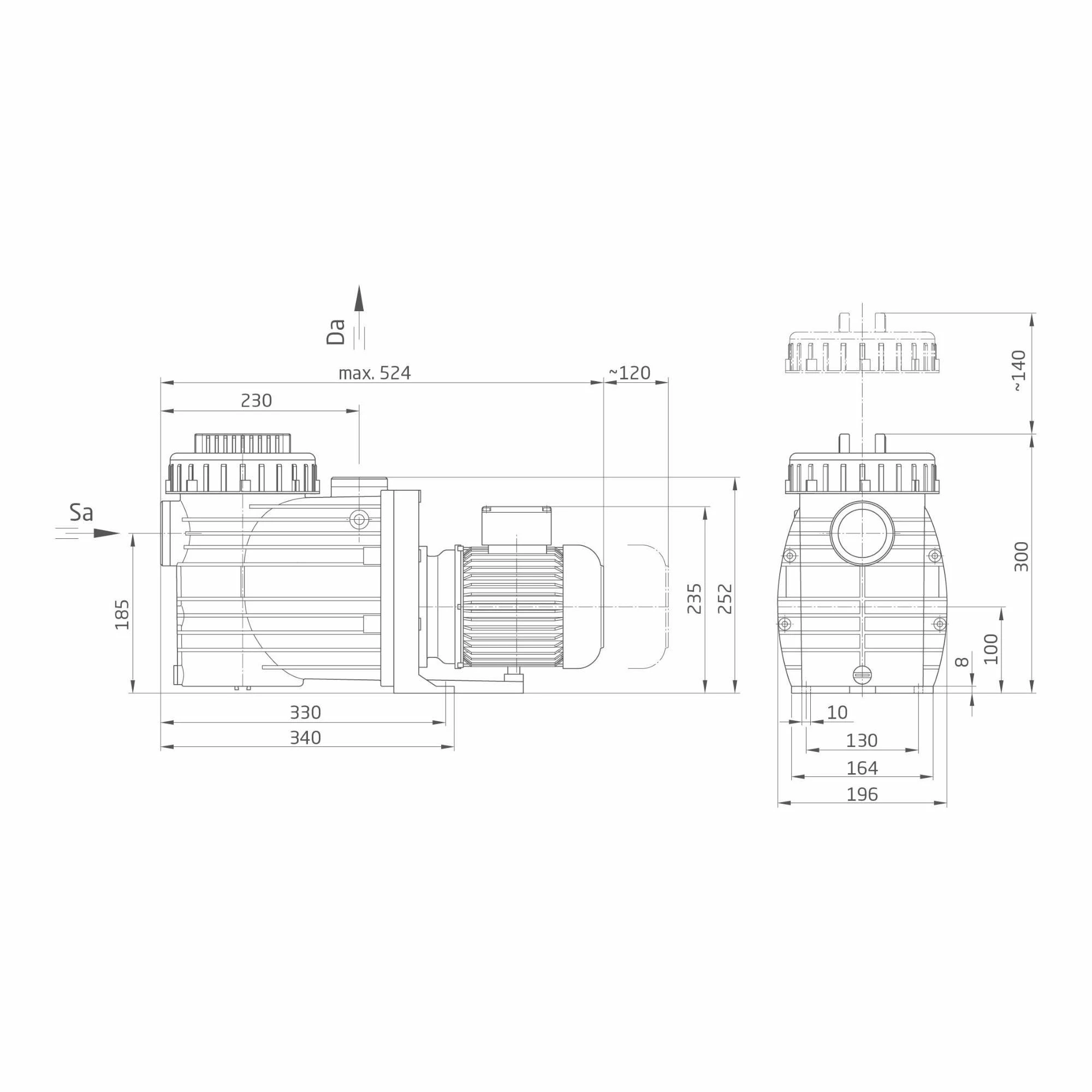 Schwimmbadwasser-Umwälzung in Filteranlagen, aufstellbar jeweils max. 3 m oberhalb oder unterhalb des Wasserniveaus.