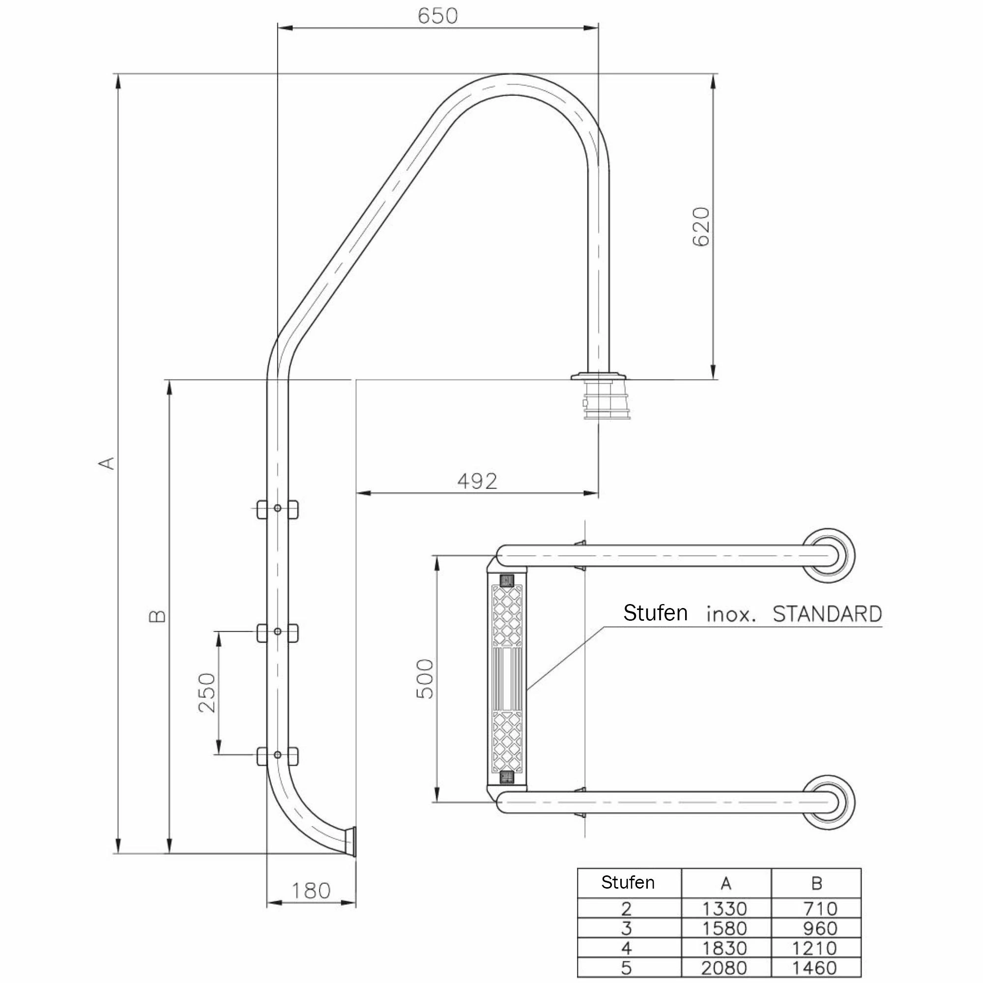 - Pool-Edelstahlleiter V2A mit 43 mm Holm