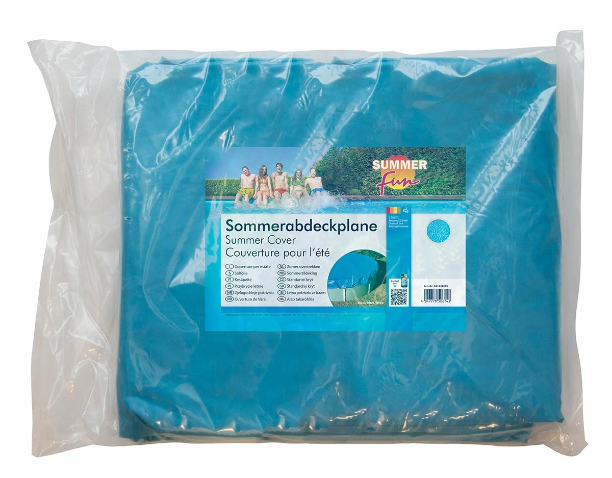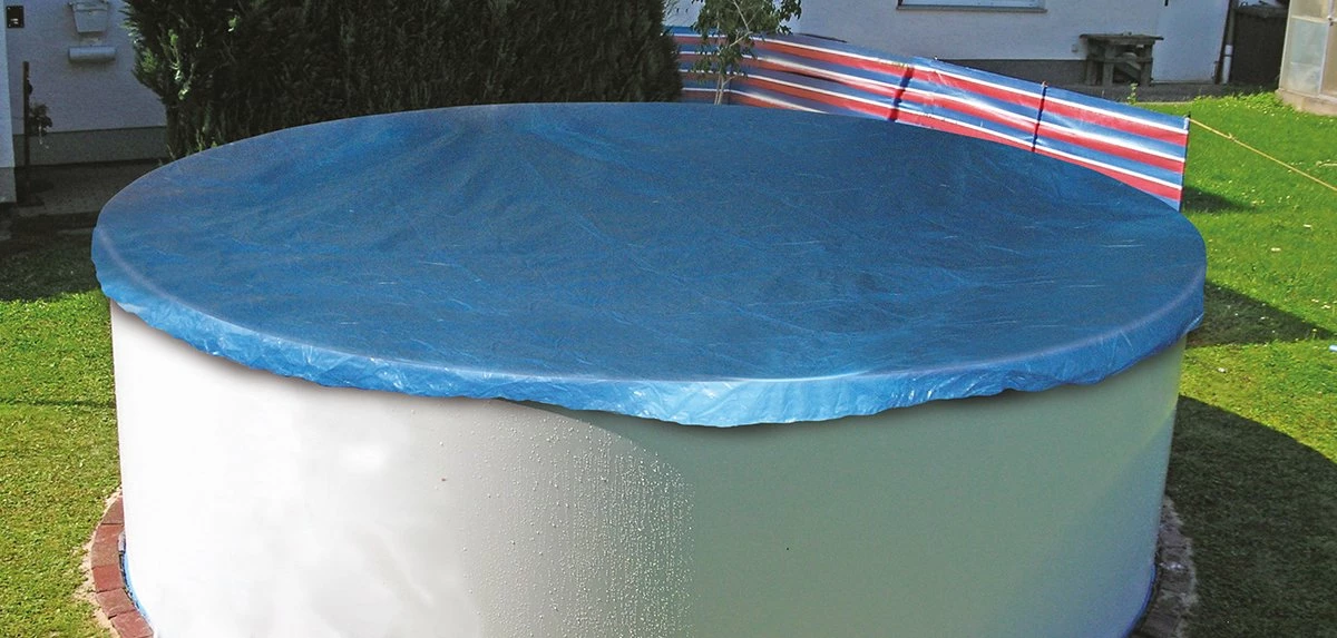 Unverzichtbar für jeden Pool ist die Abdeckplane. So schützen Sie Ihren Pool vor dem Verschmutzen und dem Auskühlen. Die Plane wird über den Handlauf gespannt und mit Hilfe des Gummizuges befestigt.