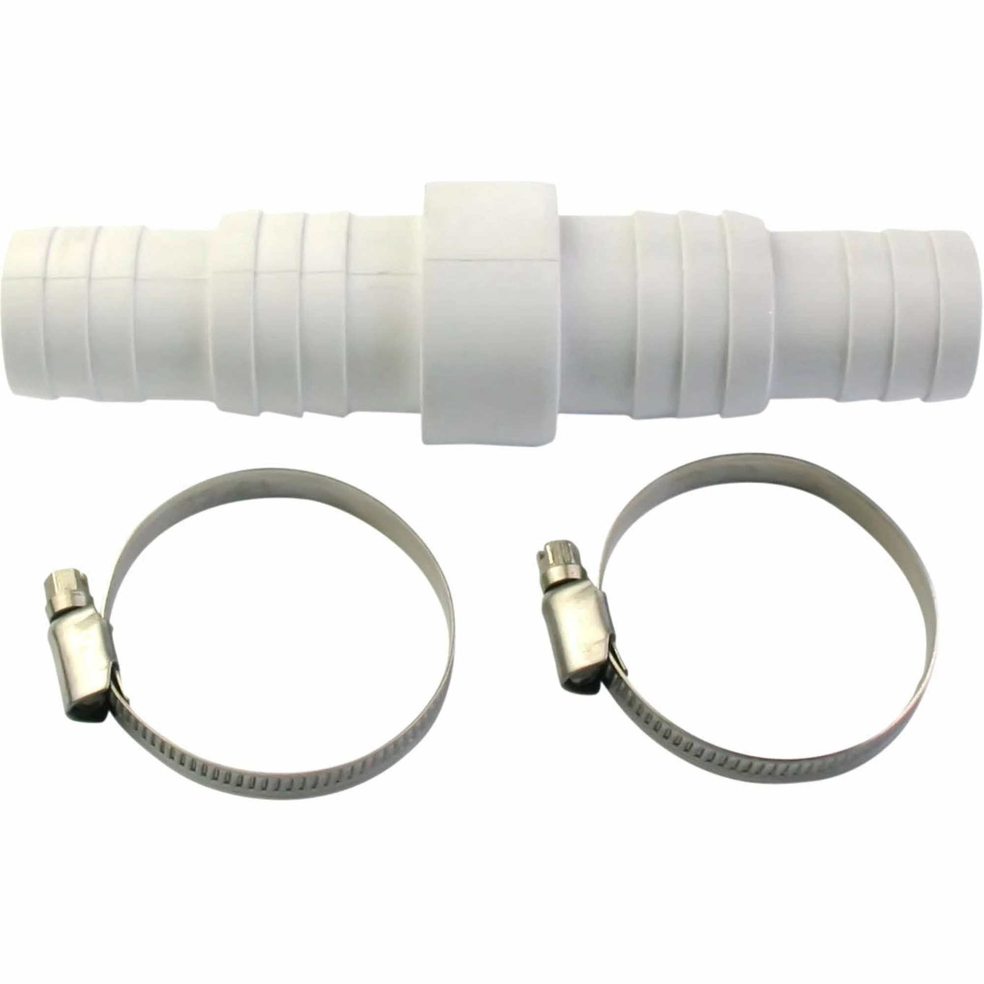 Schlauchverbinder zum Verbinden von 32 mm und 38 mm Schwimmbadschläuchen inklusive 2 Schlauchschellen. Die Schlauchtülle hat beidseitig 32 und 38 mm. Am besten die Enden der Schlauchtülle zuerst mit etwas Teflonband umwickeln und dann den Schlauch drauf stecken. Vorher die Schlauchschelle nicht vergessen. Im Anschluss die Schlauchschelle festziehen. Verbindung regelmäßig auf Undichtigkeiten überprüfen.