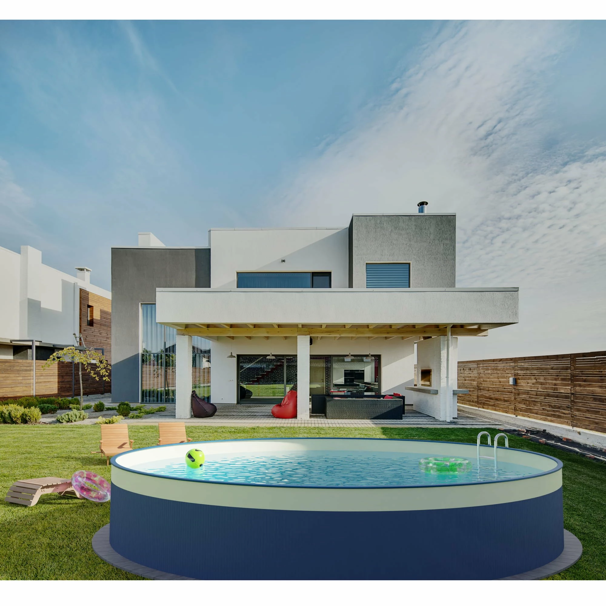 Ein runder Stahlwandpool ist der Klassiker unter den Pool-Systemen: preisgünstig & langlebig. Ideal für Heimwerker & DIY Projekte. Er besteht aus einem Mantel aus feuerverzinktem, schutzlackiertem, Stahlblech und einer abdichtenden Folienauskleidung.